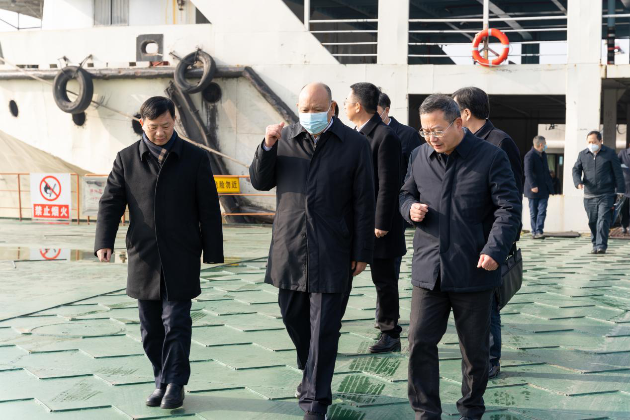 副省長(zhǎng)李建中調(diào)研長(zhǎng)沙交通集團(tuán)長(zhǎng)沙新港    2月15日,副省長(zhǎng)李建中調(diào)研湘江航道及港口建設(shè)發(fā)展情況,來(lái)到長(zhǎng)沙港霞凝港區(qū)實(shí)地考察。長(zhǎng)沙交通集團(tuán)黨委書記、董事長(zhǎng)李建國(guó),黨委副書記、董事、總經(jīng)理劉俊武在長(zhǎng)沙新港陪同考察。 李建中一行乘船從長(zhǎng)沙新港滾裝碼頭上岸,先后參觀了長(zhǎng)沙新港企業(yè)文化展廳、智能調(diào)度中心,李建中詳細(xì)了解了長(zhǎng)沙新港港口建設(shè)、作業(yè)裝卸能力、智慧港口建設(shè)等情況。 李建中指出,要全面貫徹落實(shí)黨的二十大精神和省委、省政府決策部署,落實(shí)“統(tǒng)一平臺(tái)、統(tǒng)分結(jié)合,水港協(xié)調(diào)、港產(chǎn)聯(lián)動(dòng),市場(chǎng)為主、行政推動(dòng)”的發(fā)展方向,做到市場(chǎng)拓展與港口運(yùn)行“兩手抓”,打造湖南區(qū)域港口統(tǒng)一品牌,加快推動(dòng)港口高質(zhì)量發(fā)展。 李建中強(qiáng)調(diào),推進(jìn)全省港口集約化發(fā)展,加大對(duì)湘、資、沅、澧“四水”千噸級(jí)碼頭整合力度,形成規(guī)模效應(yīng);優(yōu)化港口發(fā)展資源配置,為港口預(yù)留發(fā)展空間;發(fā)揮多式聯(lián)運(yùn)優(yōu)勢(shì),形成港區(qū)優(yōu)勢(shì)互補(bǔ)、公鐵水高效聯(lián)運(yùn)、產(chǎn)業(yè)無(wú)縫銜接的港口發(fā)展體系;做好臨港經(jīng)濟(jì)文章,帶動(dòng)相關(guān)產(chǎn)業(yè),支持優(yōu)勢(shì)產(chǎn)業(yè),積極引導(dǎo)產(chǎn)業(yè)臨港聚集;切實(shí)抓好安全生產(chǎn)和生態(tài)環(huán)境保護(hù),提升港口安全發(fā)展、綠色發(fā)展水平。 |