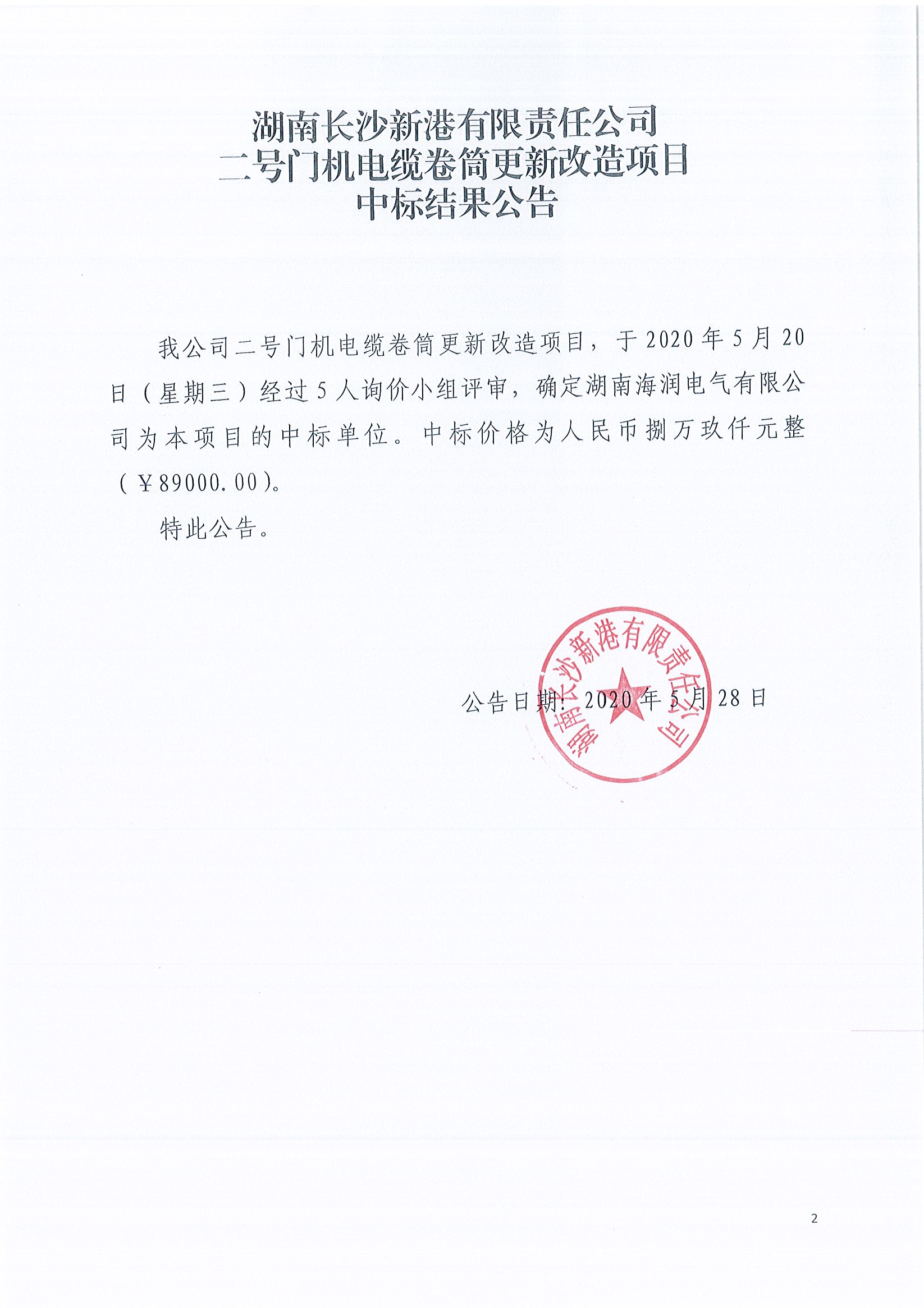 二號門機電纜卷筒更新改造項目《中標結(jié)果公告》